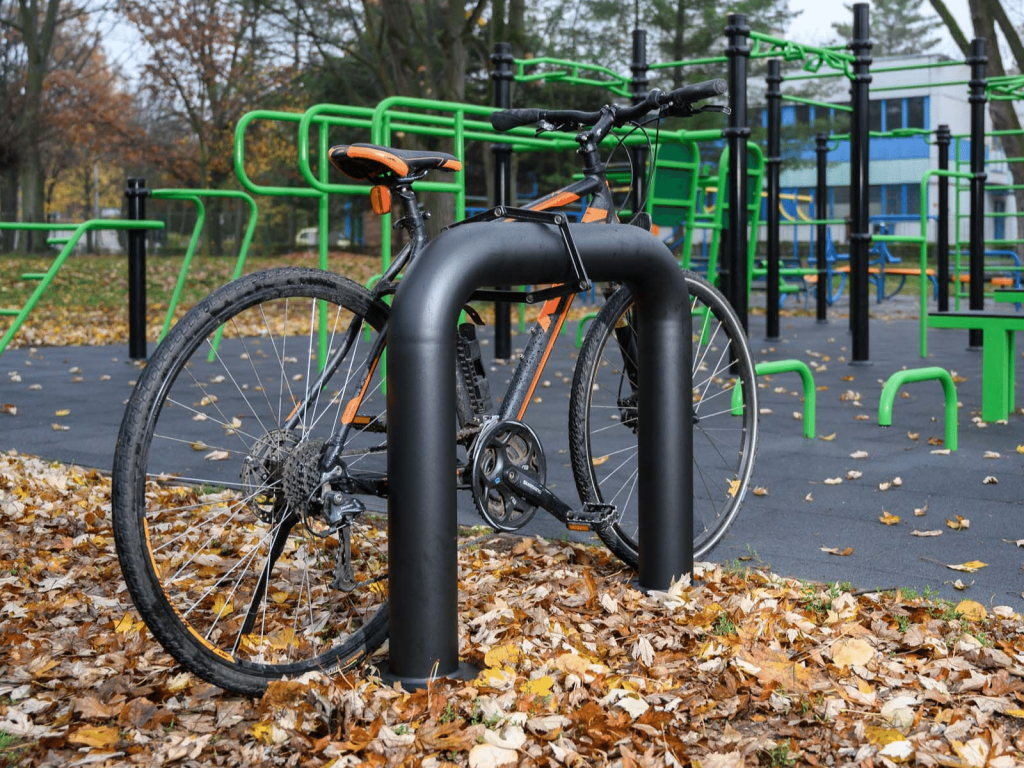 Our outdoor bike racks are made with a bent steel tube structure and a durable powder coated finish. This ensures long life and maximum safety for chained bikes.