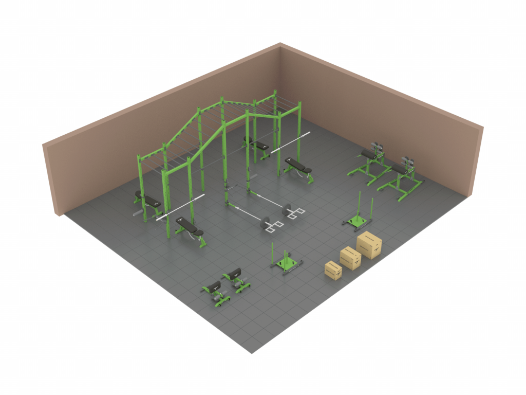 Das Indoor-Setup kann mit allen Indoor-BeStrong CrossFit-Geräten kombiniert werden.