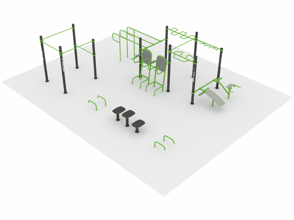 Unsere Fitnesspark-Ausrüstung umfasst eine große Auswahl an Calisthenics-, Fitness-, Outdoor-CrossFit-, sportspezifischen und Erholungselementen, die mit jeder unserer Sportpark-Konfigurationen kombiniert werden können.