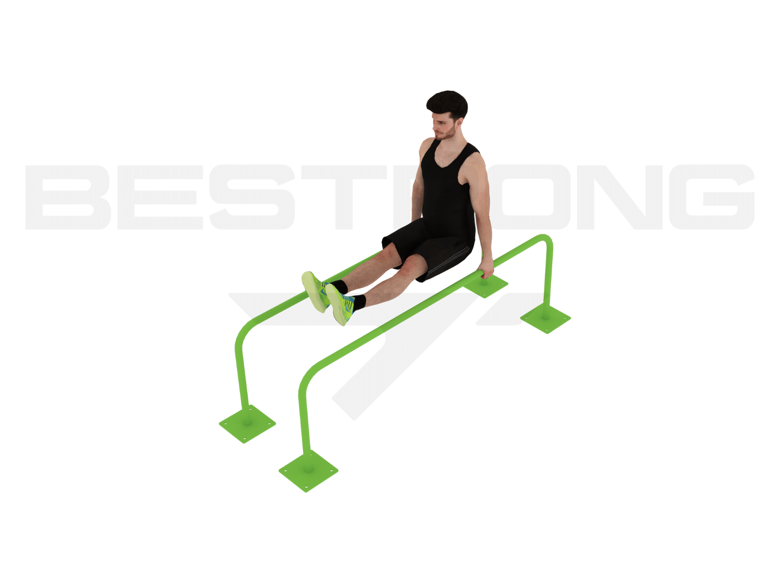 Der niedrige Parallelbarren ist ein klassisches Trainingsgerät, mit dem durch unterschiedliche Kreuzhebeübungen ein breites Muskelspektrum aufgebaut werden kann und das sich aufgrund seiner geringen Größe besonders für schwierigere Übungen eignet.