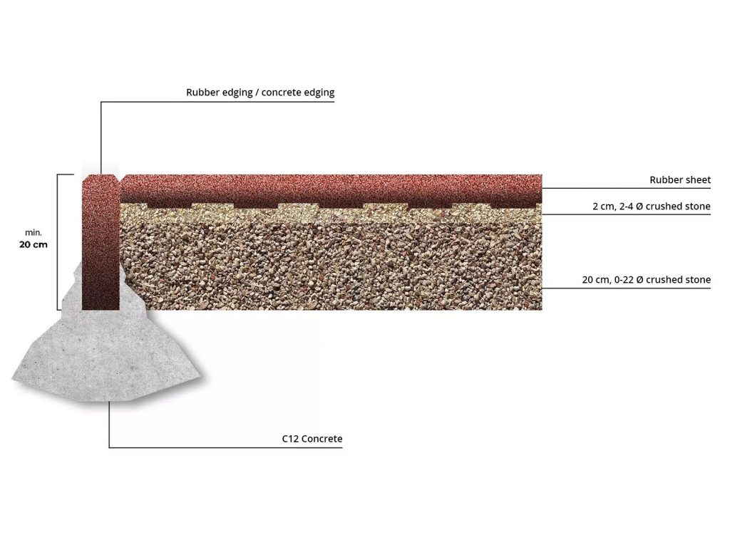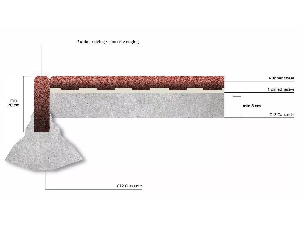 For this type of installation, we recommend laying the rubber sheets in a bonded layer.